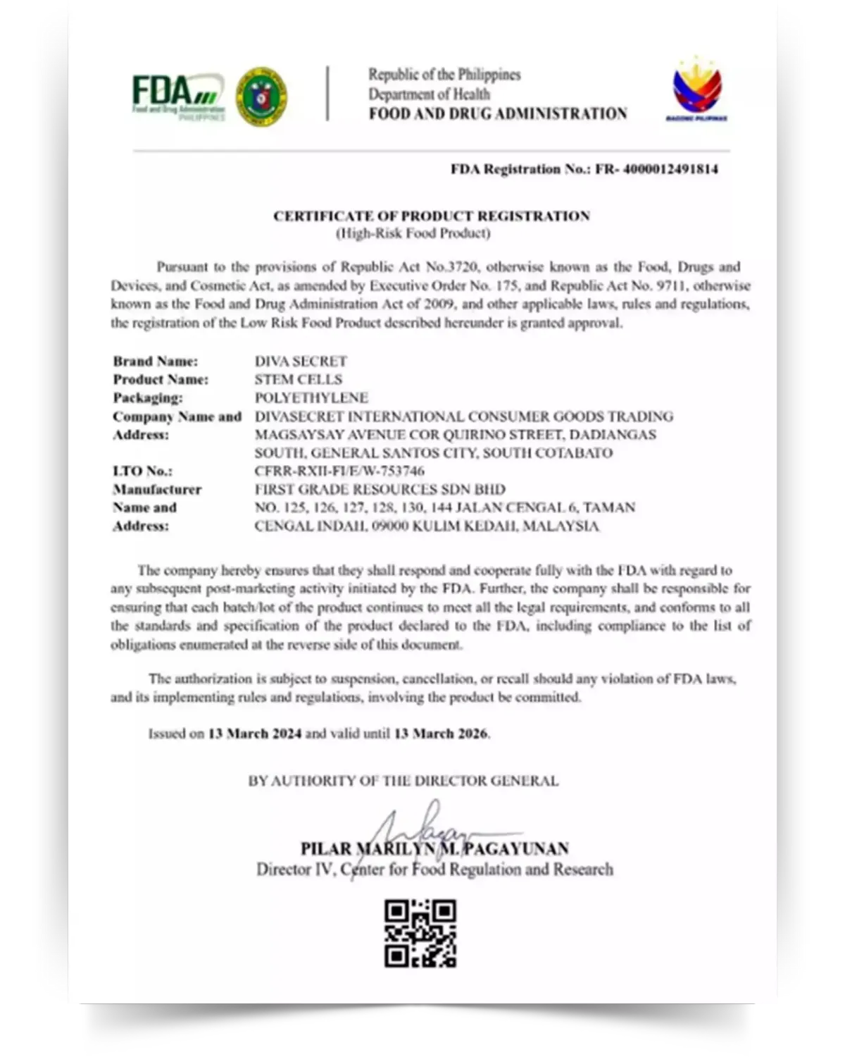 Diva Secret Stem Cell is proudly manufactured in Malaysia and distributed worldwide by Diva Secret International, a Malaysian company located in Kuala Lumpur. Its international marketing teams operate in several countries, including the Philippines.